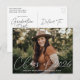 Invite a los huéspedes a celebrar el grado con nuestras elegantes postales de invitación para graduación de fotos. Las invitaciones a graduación presentan la foto del graduado con "Clase de 2025" en un diseño de escritura blanca y moderna de caligrafía. Personalice la parte delantera de la invitación moderna de graduación añadiendo el nombre del graduado y el nombre de la escuela. La postal de graduación se revierte para mostrar la dirección de retorno y los detalles de la fiesta de graduación.