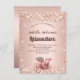 Un fondo de degradado de oro subió decorado con confeti y una romántica carroza vintage. Personalice y agregue su nombre, detalles de fiesta.