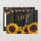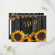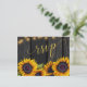 Boda de girasol elegante guión falso oro rsvp respuesta postal de invitación con escaneo de código QR (generado automáticamente) y su texto. +++++++++ boda de correspondencia y accesorios de recepción disponibles en la colección: https://www.zazzle.com/collections/sunflowers_barn_wood_rustic_country_invitations-119997684814471742 (copiar y pegar en el navegador).