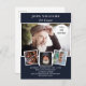 Crea tu propio collage de fotos único. Utiliza cuatro, 4 de tus fotos favoritas. Personaliza y agrega un nombre y detalles de la fiesta. Fondo azul oscuro, texto blanco.