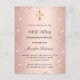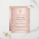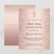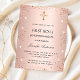 Un fondo degradado rosa dorado. Decorado con rosa dorado, purpurina falsa rosa y una cruz. Personaliza y añade un nombre y detalles. El nombre se escribe con un estilo de letra a mano