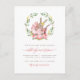 Esta encantadora invitación a la ducha para bebés incluye un conejo de natación acuarela con un arco en el pelo durmiendo en un buggy rodeado de flores y vegetación. El nombre de la futura madre está escrito a mano, en contraste con los detalles del fiesta en una tipografía sans-serif moderna. Puede escribir el mensaje de su personalizado al revés con su información de correo.