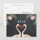 Una tarjeta postal de confirmación de asistencia con diseño floral y de flamenco con efecto de pizarra de fondo. ¡Utilice esta tarjeta de RSVP coordinada para animar a sus invitados a responder con prontitud! Edite los campos de texto disponibles para adaptarlos a sus necesidades. La parte frontal y trasera se pueden editar. Otros artículos y papelería de esta colección, como pegatinas de favor e invitaciones. Perfecto para fiestas playeras/veraniegas/tropicales, bodas y duchas/eventos.