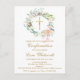 Postal De Invitación Cruz Dorada Floral Acuarela Confirmación