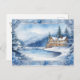 Representando una escena soñadora en tonos de azul, esta tarjeta postal de acuarela captura la esencia de una noche invernal caprichosa, invitando a personalizarla para un mensaje sincero.