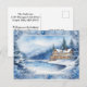 Representando una escena soñadora en tonos azules, esta tarjeta postal de acuarela captura la esencia de una noche invernal caprichosa, invitando a personalizarla con un mensaje sincero.