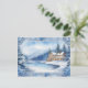 Representando una escena soñadora en tonos azules, esta tarjeta postal de acuarela captura la esencia de una noche invernal caprichosa, invitando a personalizarla con un mensaje sincero.