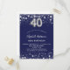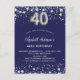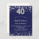 Postal De Invitación cumpleaños 40 azul marino estrellas plateadas
