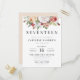 Un diseño hermoso y elegante adecuado para una amplia gama de edades. Esta invitación presenta una hermosa pintura de acuarela de un ramo floral en la parte superior. Debajo hay la tipografía de la invitación en letras modernas y elegantes.