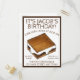 El diseño de la invitación presenta una ilustración original a marcador de un delicioso malvavisco de chocolate y malvavisco tostado al fuego, con malvaviscos tostados en palitos en el reverso. Perfecto para celebrar un cumpleaños con tema de campamento u otra fiesta. Simplemente personalice con la información de su evento.