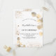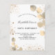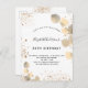 Para una elegante fiesta de cumpleaños número 50 (o cualquier edad). Un elegante fondo blanco decorado con eucaliptos dorados y un polvo falso purpurina dorado. Personalizar y un nombre y detalles del fiesta. Letras de color negro. Fondo blanco, polvo purpurina, diseño postal. Sugerencia: Si no desea que se vea como una postal, haga clic en personalizar, vaya a la parte posterior y quite el separador y el sello postal.