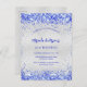 Para una fiesta de cumpleaños elegante de 18 años (o cualquier edad). Un fondo con apariencia de plata falsa. Decorado con confeti azul real. Personaliza y agrega un nombre y detalles de la fiesta. El nombre se escribe con un estilo de letra a mano.