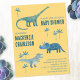 Pequeños y divertidos dinosaurios, Tyrannosaurus Rex, Triceratops y Diplodocuments para dar la bienvenida a un pequeño en el mundo. Invitación a una ducha de bebé neutra en función del género. Cambie el nombre y los detalles para personalizar. Volver está en blanco para su propio mensaje. Arte original de Nic Squirrell.