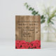 rosas rojas bonitos con una invitación rústica a la boda. Se puede cambiar la redacción o eliminar la información para personalizar las invitaciones de celebración.