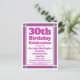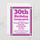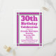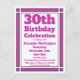 Envíe invitaciones a una celebración de cumpleaños número 30 con esta postal de invitación de cumpleaños 30 de púrpura geométrica. Personalizado con su información personal y fiesta.