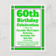 Envíe invitaciones a una celebración de cumpleaños número 60 con esta tarjeta postal de invitación de cumpleaños 60 geométrica verde. Personalizado con su información personal y fiesta.