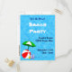 Una tarjeta postal de invitación personalizado a la playa o a la piscina con una bola de playa y un paraguas a un lado y una habitación para tu dirección de regreso en cartas divertidas. Haga clic en Personalizar para cambiar las fuentes, el tamaño y más, incluso para guardar el diseño para más adelante.