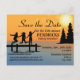 Diseño creativo de reunión familiar, con fondo colorido, guardar la tarjeta de fecha. Silhouette de alegría saltando niños incluidos. Personaliza el texto.