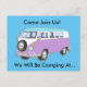 ¡Invite a otros a que se unan a usted en un viaje de campamento con esta simple postal! Puede editar el texto para decir lo que le gustaría en cualquier lugar de la postal. En el frente dice, "Ven a unirte a nosotros" "Acamparemos en". On the Back is le da un lugar para agregar la dirección, cámping, fecha y cualquier instrucción especial. ¡Haz una tarjeta y envíalas a todos tus amigos! ¡Una buena manera de conseguir amigos o reuniones familiares divertidas este verano!
