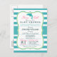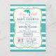 It's a Girl! Elegante ducha de bebé delfín azul turquesa de agua, con rayas verticales, y resaltado rosa con un aspecto formal vintage. Ideal para chicas acuáticos acuáticos acuáticos acuáticos y duchas para bebés. Invitación de forma de corchete retro.