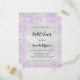 Una moderna y elegante ducha de novia. Fondo de color falso plateado decorado con chispas de imitación violeta y una gran mariposa. Personalice y agregue un nombre y detalles del fiesta. Letras de color negro.
