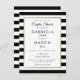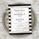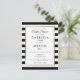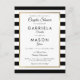 Con un fondo clásico de rayas negras y blancas, esta elegante tarjeta postal con invitación a la ducha de parejas de novios tiene un falso borde de Relieve metalizado dorado que enmarca los detalles de ducha de las parejas en una moderna tipografía de moda. Diseñado por Thisisnotme©