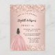Postal De Invitación Dulce 16 rosa purpurina vestido fiesta