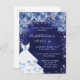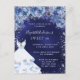 Postal De Invitación Dulce 16 vestido azul marino purpurina fiesta flor