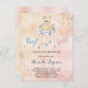 Para un género revelar la ducha de bebé. Un marco rústico dorado y rosa chillón. Oso de peluche con globos blancos, azules y rosados y polvo de purpurina dorado. Personalice y agregue el nombre de la futura madre y los detalles del fiesta. El nombre y el texto: ¿Niño? Chica? están escritas con un guión estilo con letras a mano Back: fondo dorado y rosa rubor, diseño de postales. Sugerencia: Si no desea que se vea como una postal, haga clic en personalizar, vaya a la parte posterior y quite el separador y el sello postal.