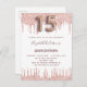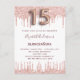 Postal De Invitación El oro rosa de Quinceanera gotea rosa