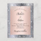 Una invitación de boda moderna y elegante. Plata falsa y dorado rosa decorado con purpurinas de plata falsa, chispas. Personalice y agregue sus nombres y detalles del boda. Letras de color negro.