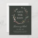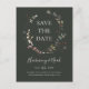 Esta tarjeta postal de invitación de guardar la fecha, botánica chic navideña de color verde oscuro, es perfecta para tu boda rústica y caprichosa de invierno. Diseñada con vegetación acuarela boho navideña, que incluye bayas rojas de acebo y hojas verdes simples. El clásico floral bohemio de diciembre es otra característica de diseño que completará el tema que estás buscando. Puedes personalizarla con tus propias fotos o dejarla tal como está. ¡Asegúrate de revisar el resto de la colección para completar tu suite de boda!
