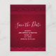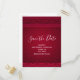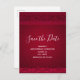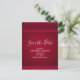 Guarde el cumpleaños de fecha con un fondo rojo decorado con elegantes remolinos y diseños ornamentales a lo largo de las fronteras.