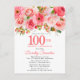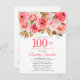 Postal De Invitación Elegante Floral Rosa Cumpleaños 100