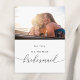 Tarjeta de presentación para la fiesta nupcial "Will You Be My Bridesmaid" diseñada por un personalizado, que presenta una elegante caligrafía a mano con un diseño sencillo y moderno.