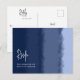Una elegante tarjeta postal de respuesta de boda con elección de comida que presenta un patrón de acuarela expresiva de rayas dibujadas a mano en un tono profundo de azul marino. Una encantadora opción temática náutica para una boda de playa o recepción de playa.