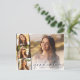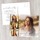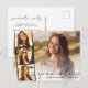 Elegante invitación de graduación y postal de invitación a fiesta presentando la foto del graduado con una tipografía de tres fotos cuadradas más pequeñas y "Graduado" en un guión moderno y su nombre y año de clase en una tipografía simple. Al revés, añada los detalles del fiesta.