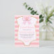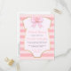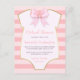 ¿Evento a larga distancia? Puedes dejar que tus amigos y familiares se refieran a tus planes de ducha con estas elegantes invitaciones con postales. Con un contorno de traje de bebé en falso Relieve metalizado de oro con un arco rosado en la parte superior, colocado sobre rayas rosas y onduladas. Sus detalles se muestran en una tipografía moderna que combina secuencias de comandos y tipos de letra serif. Haga clic en "Personalizar esta plantilla" y comience a agregar sus propios detalles.