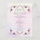 Postal De Invitación Embarazada de gemelos: Acuarela floral boho y lava