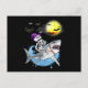 Postal De Invitación Esqueleto Divertido Montando Tiburón Halloween Niñ