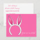 ¡Simplemente personalice con la información de su evento! El diseño de la invitación estilo tarjeta postal presenta una ilustración original a mano de un par de orejas de conejo rosas y blancas. Ideal para una fiesta de bebé o celebración de Pascua.