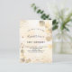 Para una elegante fiesta de cumpleaños número 50 (o cualquier edad). Un fondo dorado de color agua adornado con eucaliptos dorados y polvo falso purpurina de oro. Personalizar y un nombre y detalles del fiesta. Letras de color negro. Fondo de color dorado, diseño postal. Sugerencia: Si no desea que se vea como una postal, haga clic en personalizar, vaya a la parte posterior y quite el separador y el sello postal.