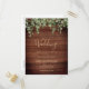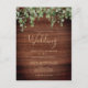 Invite a sus amigos y familiares a su boda con esta madera rústica con hojas de eucalipto, elegantes pero casuales tarjetas de invitación a la boda. Personaliza con nombres, fecha de boda, ubicación y cualquier otra información. Añadir sitio web y cualquier otra información en la parte posterior. Estas originales invitaciones a bodas botánicas de vegetación harán una impresión duradera. DERECHOS RESERVADOS © 2020 Judy Burrows, Black Dog Art - Todos los derechos reservados. Postal de invitación a bodas de bodas de eucalipto de madera rústica