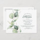 El floral Eucalyptus deja la tarjeta postal de invitación a la ducha de novia manuscrita que puedes crear fácilmente una invitación única para tu fiesta previa a la boda con tus mejores amigos.