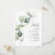 Invitación a Baby Shower con guión botánico Eucalyptus Greenery. Tarjeta de invitación a la ducha de bebé, moderna y mona, con un toque de género neutro y con un tubo de eucalipto y hojas de color agua. Perfecto para niños y chicas, y para parejas con ducha de bebé. Cambie completamente el diseño, el texto y el fondo haciendo clic en el botón "Personalizar"