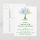 This Family Reunion invitation postcard features a watercolor family tree in pastel shades and green typography.