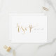 Guión RSVP con letras de mano en color Relieve metalizado de oro falso, elegante y elegante, grandes y modernas postales de boda RSVP personalizadas. Vea todas las piezas coincidentes de la colección.