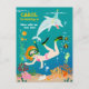 Postal De Invitación Fiesta de cumpleaños de delfines y niña bajo el ma