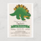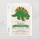 Dino de estegosaurio verde, tema de dinosaurio prehistórico neutro, invitación de cumpleaños de niño o chica. Personalice esta atracción linda y retro con el nombre de su hijo. Diseño sencillo, sencillo y sencillo. Perfecto para el primer, primero, cumpleaños, niño pequeño, niños pequeños o mayores. Los colores son verde y marrón.