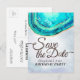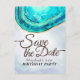 Fiesta De Cumpleaños Guarda Las Plantillas De Postales De Invitación De Fecha - Elegante Watercolor Turquesa Y Goma De Oro. Un diseño perfecto para tu gran día. ¡Todo el estilo de texto, colores, tamaños se pueden modificar para adaptarlo a sus necesidades!